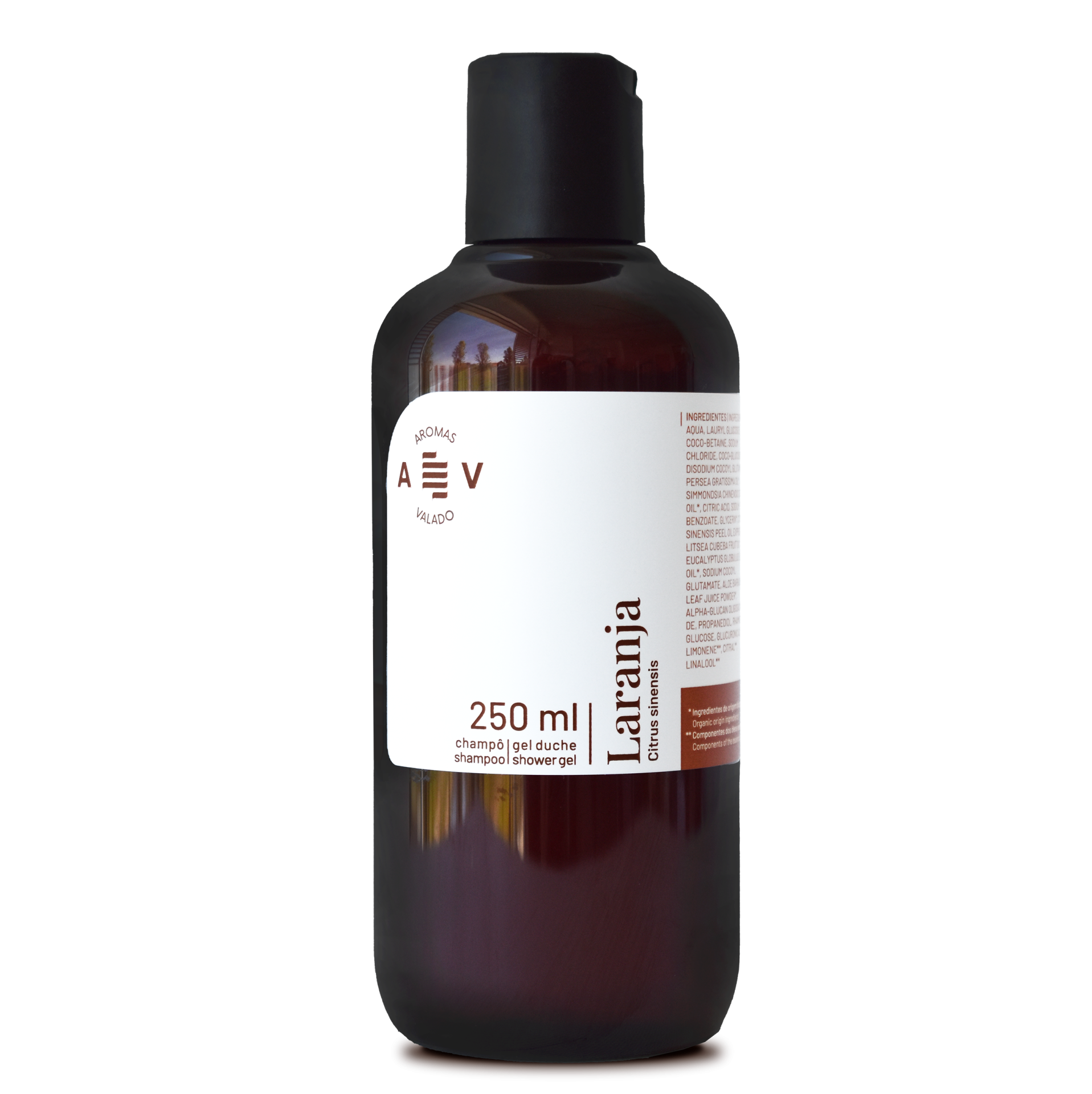 Champô e Gel Duche de origem natural, hidratante, enriquecido com óleo vegetal de abacate e jojoba e óleos essenciais. Fórmula vegana e com certificação biológica. Produto aromatizado com óleo essencial de laranja.